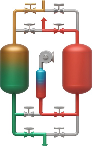 The ANKA VOC Removal System basically consists of two tanks containing the filter media used for VOC removal. These tanks operate alternately. When the VOC removal capacity of one tank is saturated, the system automatically switches to the other tank, while the saturated tank is regenerated and made ready for reuse. In this way, clean gas is supplied to the engines continuously and without interruption.
